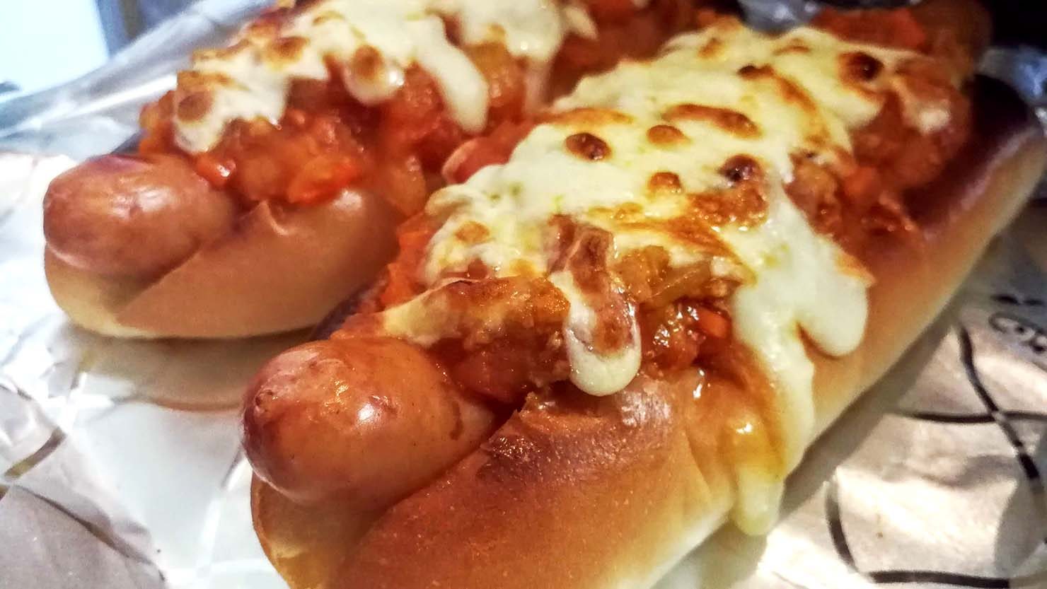 5.ミートソースの粗熱が取れたら、ソーセージをパンに挟む