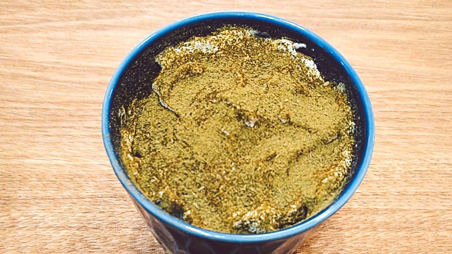今回はできるだけ粉末茶の存在感を残した料理を作ってみたいと思い、粉末茶を前面に出したパスタを作ってみました。
