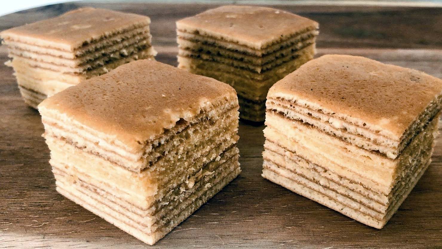 生地を流し入れる際に、厚みが均一になるように延ばしていくと、年輪の模様になります。冷蔵庫で一晩寝かせるとしっとりするので、お好みで食べるタイミングを変えて、食感の違いを楽しんでみてくださいね。