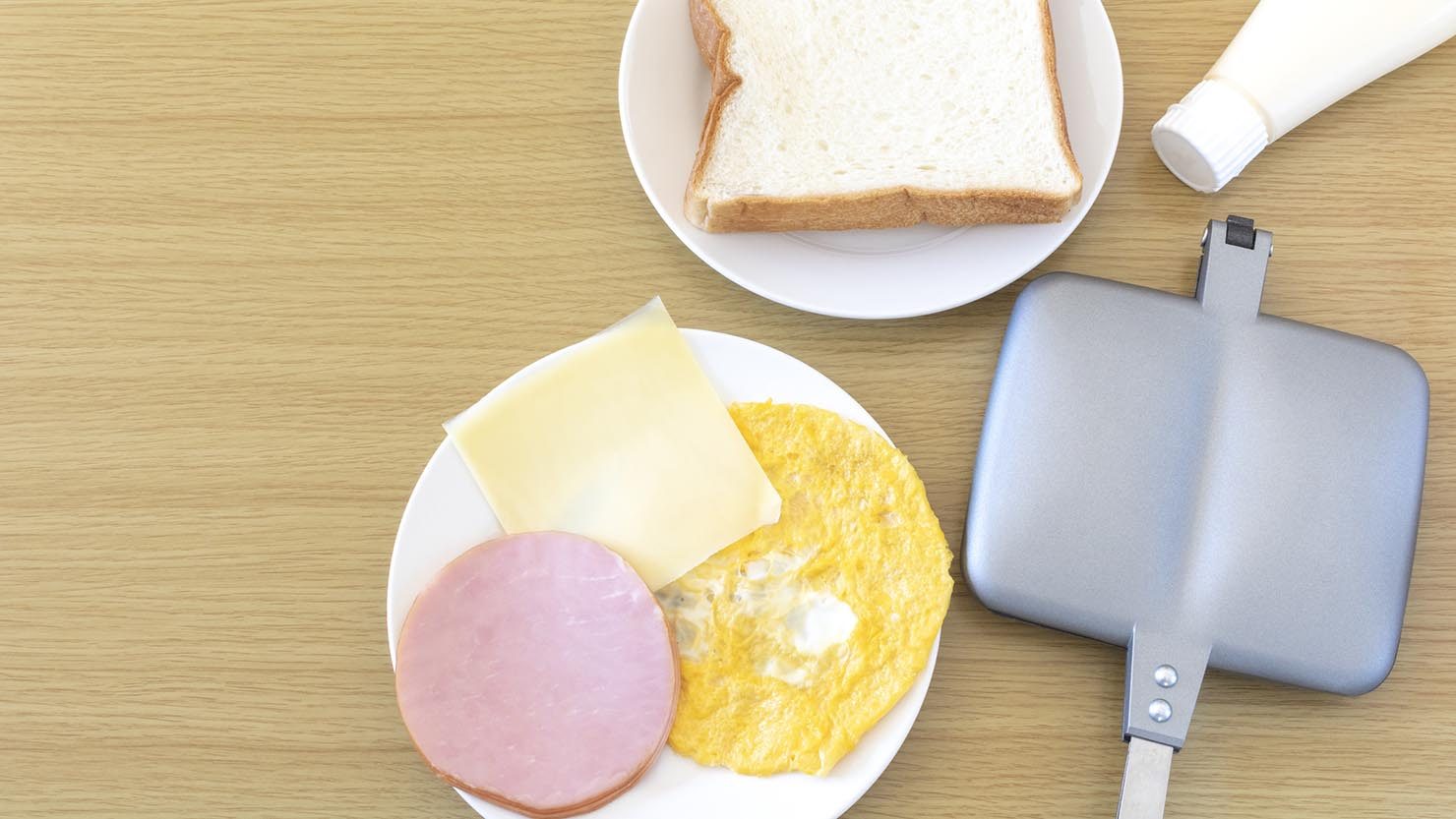 ホットサンドなら、炭水化物を食パンで、たんぱく質を具材の卵やハムから、ビタミン・ミネラルを野菜から取ることができます。ホットサンドに具だくさんのスープや果物、ヨーグルトをプラスすると、さらにバランスのいい朝食になります。