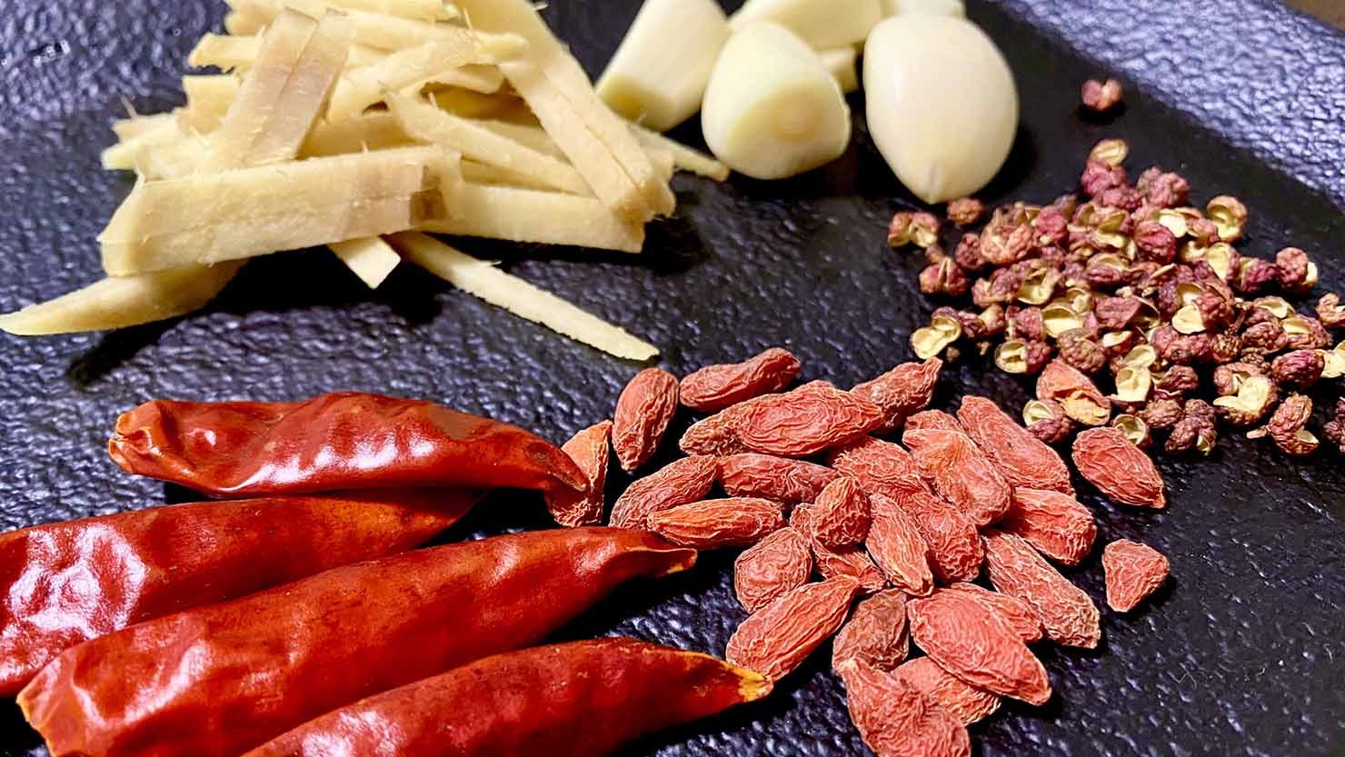 これらの香辛料であれば、ほとんどのスーパーで手に入りますね。唐辛子やニンニク、生姜は火鍋の味を決める香辛料であり、身体を温める作用があるので健康のためにも必ず取り入れています。また、花椒を入れることでピリッとした本格的な火鍋らしい辛さを足すことが可能です。