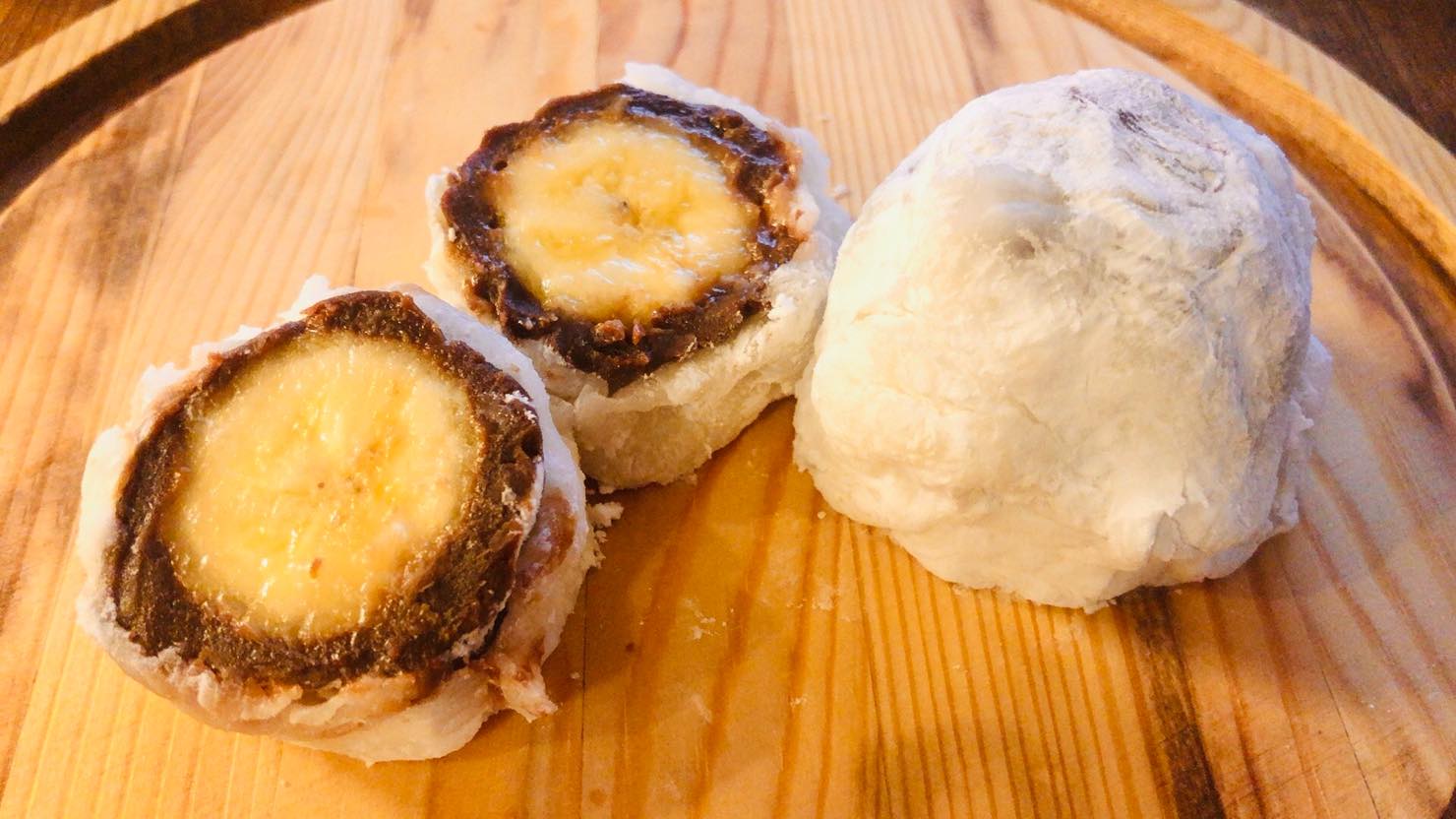 濃厚な生チョコレートとバナナの相性抜群な大福です。生チョコレートはあたためた直後は包めないので、先に生チョコレートを作り、冷やし固めてから大福を作ってみてくださいね。