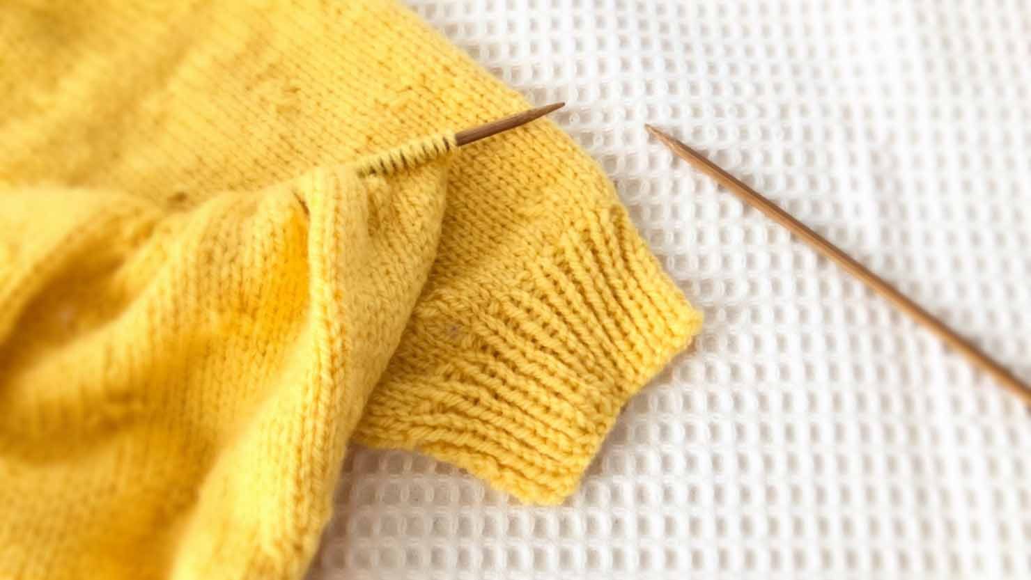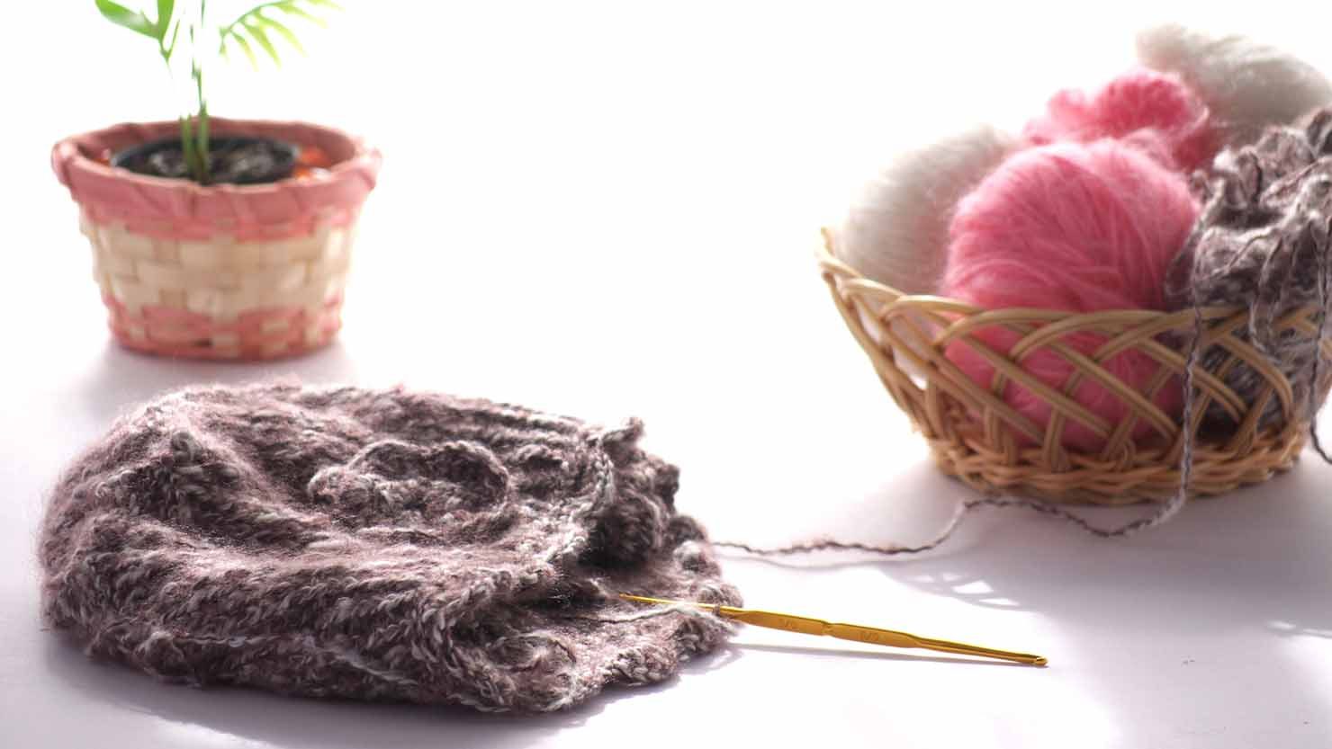 かぎ針編みは伸縮性を出しづらいため、初心者の方にはサイズの調整が難しいです。また、棒針を4本使用すると編みづらく、取扱いが難しくなります。
