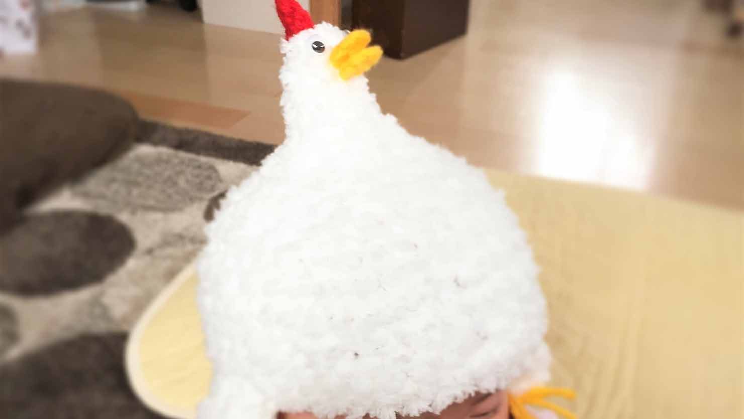 こちらのニワトリのニット帽は、酉年のお正月に、子どもにかぶせました。