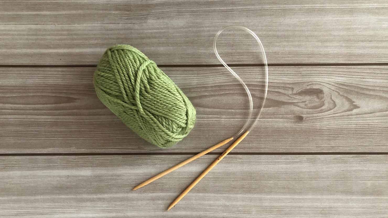 一番手軽にニット帽を作れる編み針は、実は100円ショップでも購入できます。“輪針”という、2本の短い棒針がチューブでつながれた編み針です。