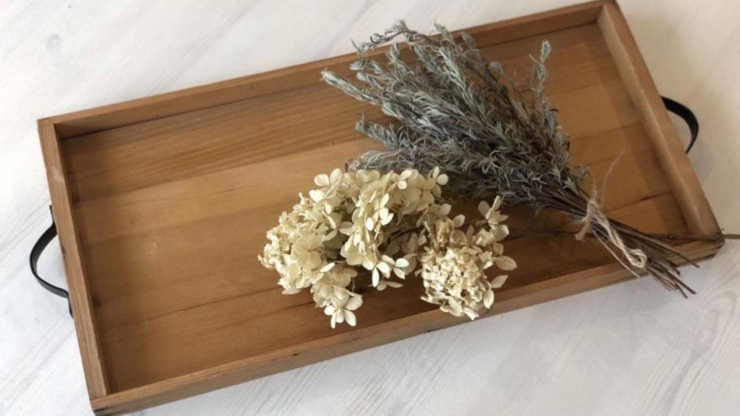 カットが難しいという方は、100円ショップの木材やそうめん箱などの木箱を使って簡単な小物を作ってみましょう。こちらはそうめん木箱に100円ショップの取手をつけただけの木のトレイです。お好みでペイントしてみてもいいですね。