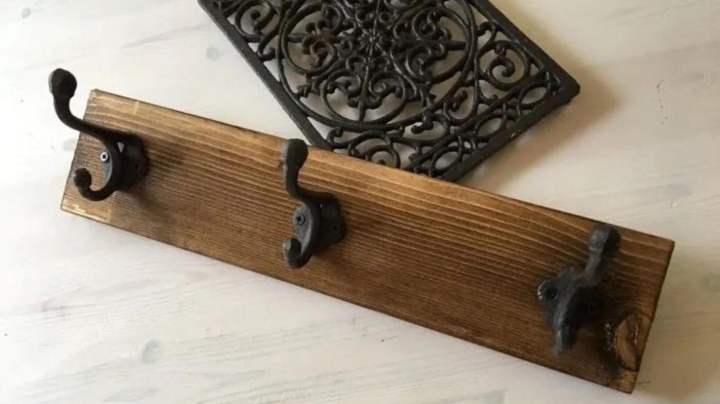 好みの長さにカットしたワンバイフォーや100円ショップの木材に、フックと三角吊りカンをつけるだけで完成です。いろいろな形のフックがあるので、お好みのものを見つけて挑戦してみてくださいね。
