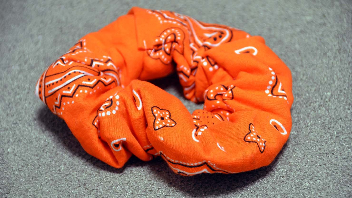 オレンジのハンカチで作ったので、お出かけのときやちょっと料理をするときなどに結ぶと、華やかになって気分も上がります。色違いや柄違いで作って、服装やその日の気分に合わせてオリジナルのヘアアレンジを楽しむことができます。