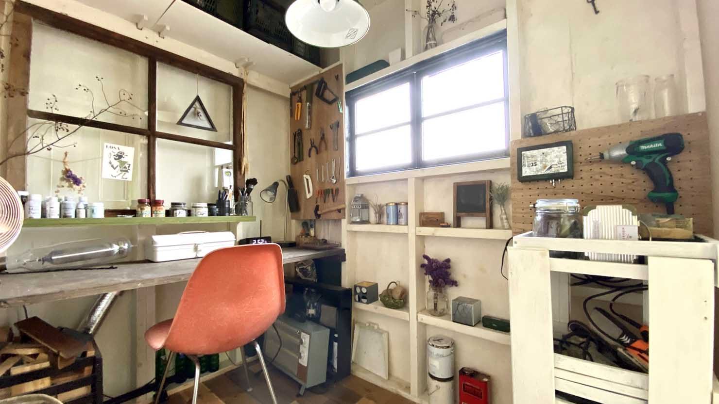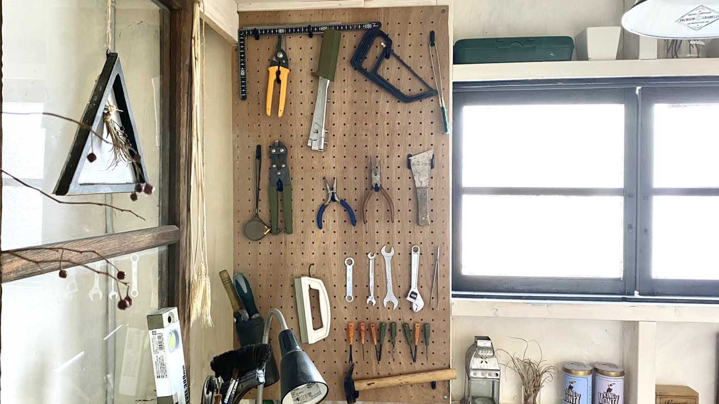 そこで作業台の近くに有孔ボードを設置したところ、工具を探すことがなくなり、道具が使いやすくなりました。見せる収納としても気に入っています。
