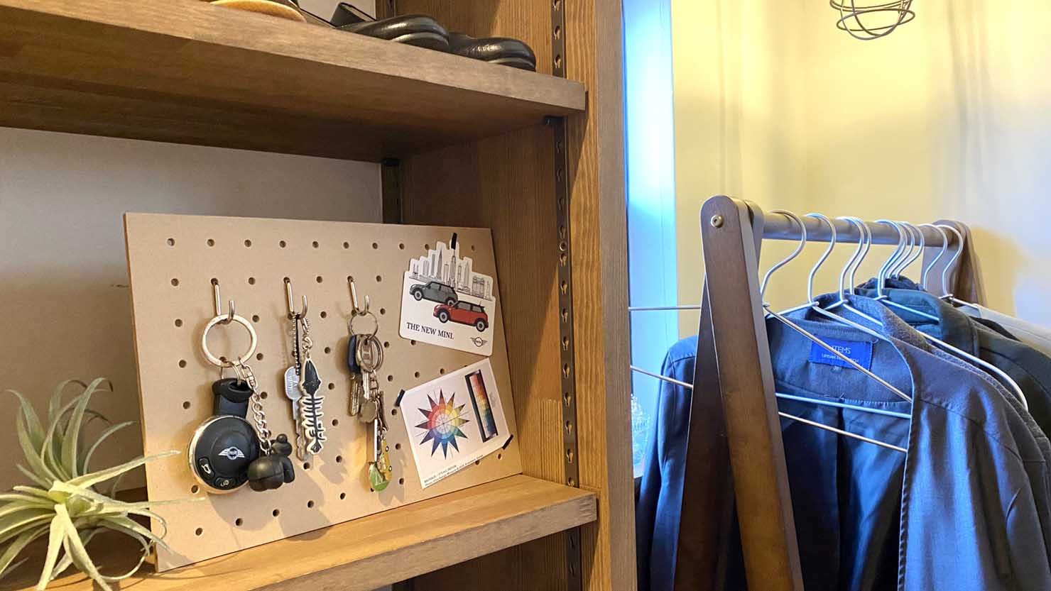 有孔ボードを設置すると、壁に新たな収納場所が増えます。狭くてスペースがなく、置き場に困っていたものに居場所ができます。