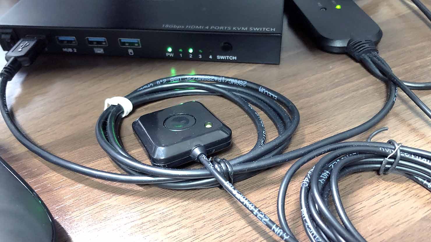 ただし6台のパソコンは、それぞれモニター画面との接続端子が異なるため、使用するたびに端子を切り替える必要があります。この作業はさすがに面倒なので、モニターとパソコンをつなぐ接続端子は常にハブ機器に取り付けた状態にしました。その結果、スイッチの操作で使用するパソコンを簡単に切り替えられるようにしました。