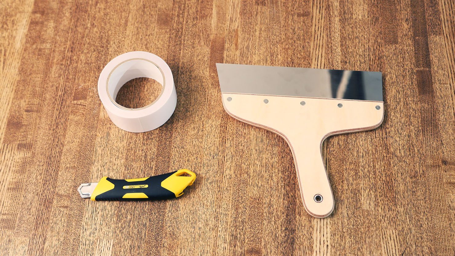 私の家は改装不可な賃貸物件なので、簡単に原状回復できる両面テープを使用した方法で重ね貼りをしました。