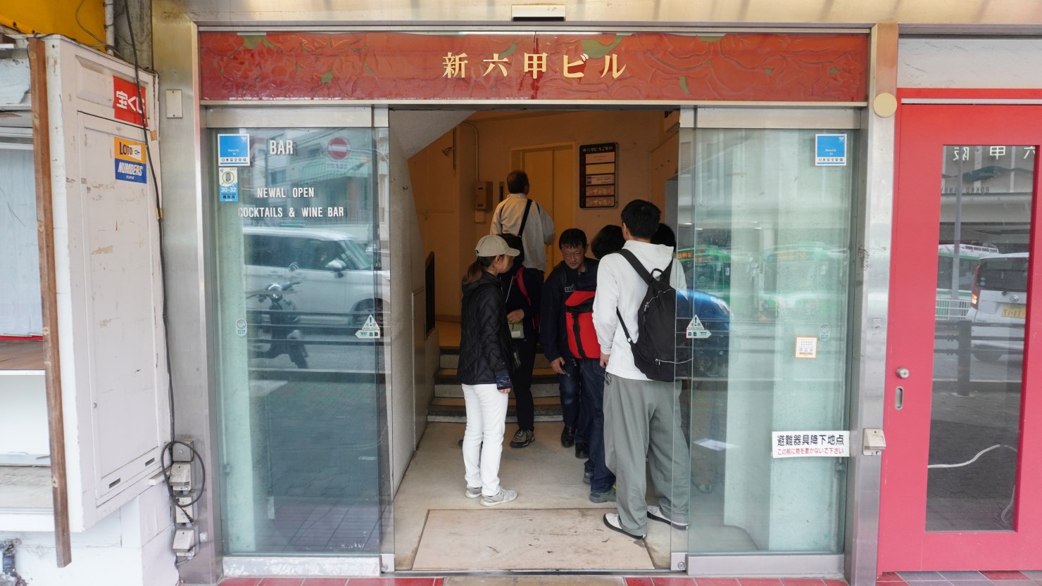 さて、最初に向かったのは阪急神戸線の車窓からも見えるランドマーク、新六甲ビル。1966年創業で2023年1月に歴史に幕を下ろした中華の名店「六甲苑」が入居していたモダンビルです。久々に六甲に降り立った参加メンバーからは「閉店しちゃったんだね」と当時を懐かしみ、閉店を惜しむ声も聞かれました。