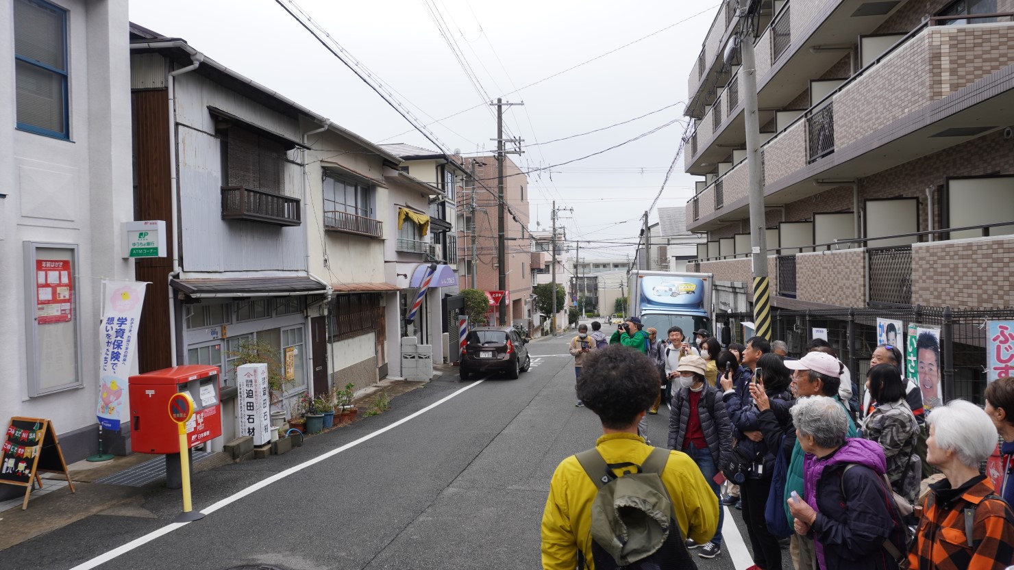 公園で昼食と自己紹介を済ませ、まち歩き後半戦がスタートです。前半戦の途中から少しずつ坂が増えてきたものの、涼しい気候もあってか、まだまだ皆さん体力が有り余っている模様。