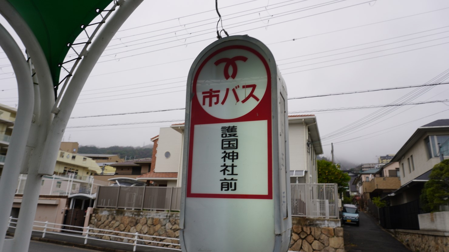 歩みを進め、山麗線/国魂線という大通りに出ると、護国神社前というバス停に行き当たりました。実はここ、慈さんのお気に入りのバス停だとか。