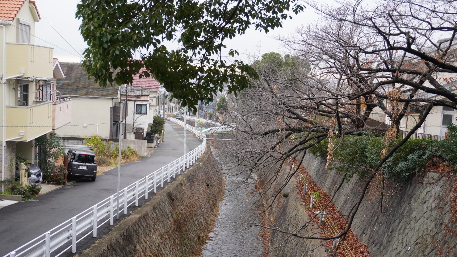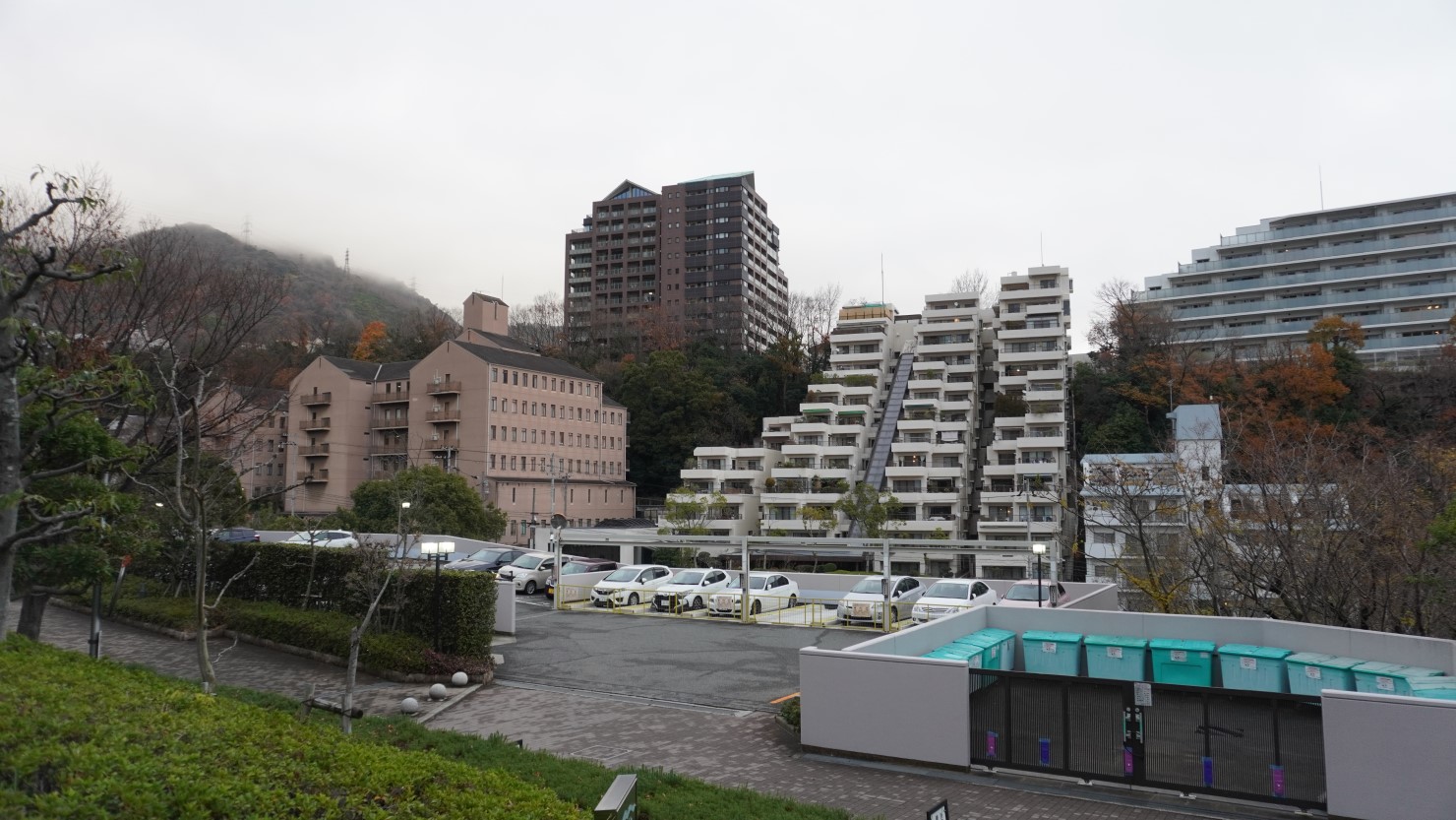 大月台公園からは六甲川に沿った神戸六甲線をひたすら下ります。周囲にある団地群は都会に建造されたものとは異なり、傾斜がありながらも広々とした土地だからこそ、贅沢さと遊び心を兼ね備えていました。団地好きの方のみならず近代建築全般に興味がある方には一見の価値があるのではないでしょうか。