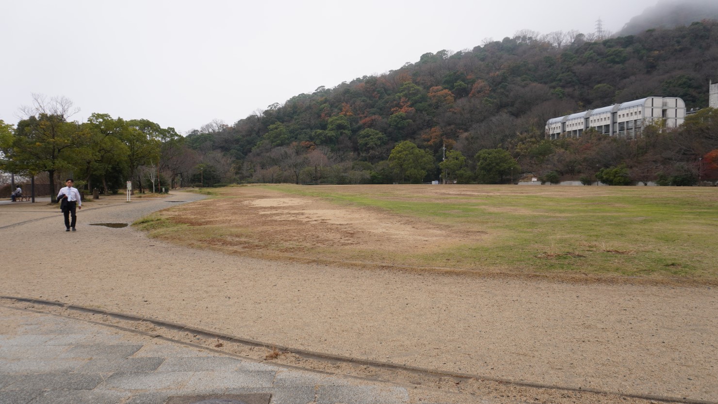100段近くある階段を登れば、灘丸山公園に到着です。もともとは神戸製鋼所の野球場だったのだそう。ここから放たれたホームランボールが下の家の窓を割ってしまっていたことは言うまでもありません。