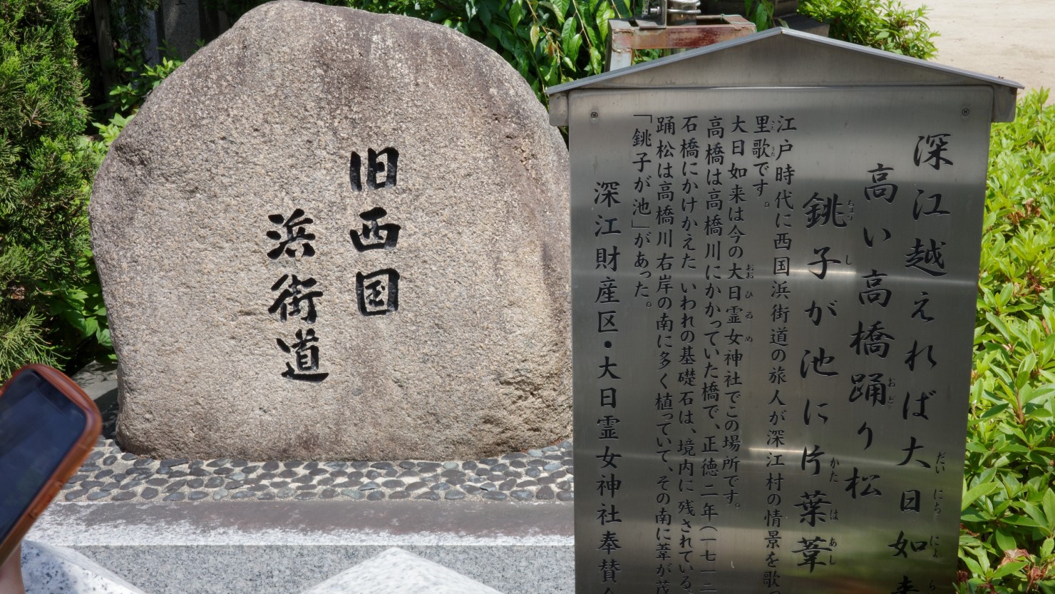午後は深江浜町から深江南町まで戻り、神戸市道防潮堤線を東へ。次の目的地への途中に見つけたのが、深江財産区管理会によって建てられた「えびす神社跡」の石碑。