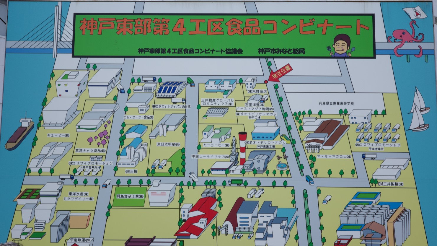 「東灘高校のこのうわさ、気になりますよね。ちょうどお昼前なので、もう少し行ったところにある東部第4工区食品コンビナートで本当にペペロンチーノのにおいがするのか確かめてみましょう」