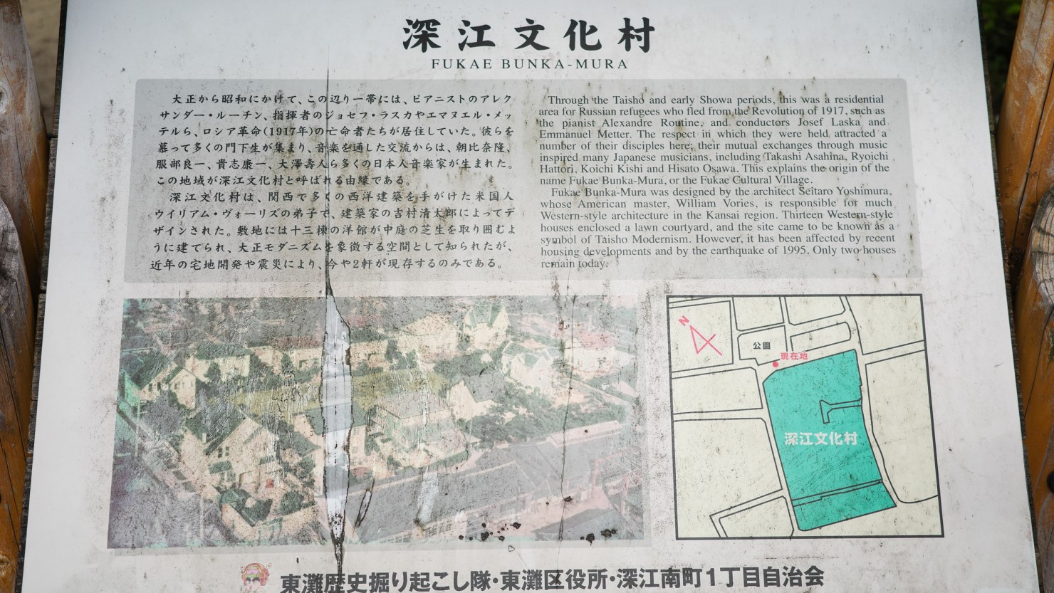 次に訪れたのは「深江文化村」跡地。大正末期の1924年に誕生した、西洋建築の住宅街です。設計を担当したのは、建築家の吉村清太郎。神戸女学院大学を設計したアメリカ人建築家のウィリアム・メレル・ヴォーリズの弟子に当たる方です。13軒の洋館が広々とした芝生の庭を囲むように建てられ、ロシア革命や関東大震災から逃れてきたロシアの文化人や貿易商が移り住みました。