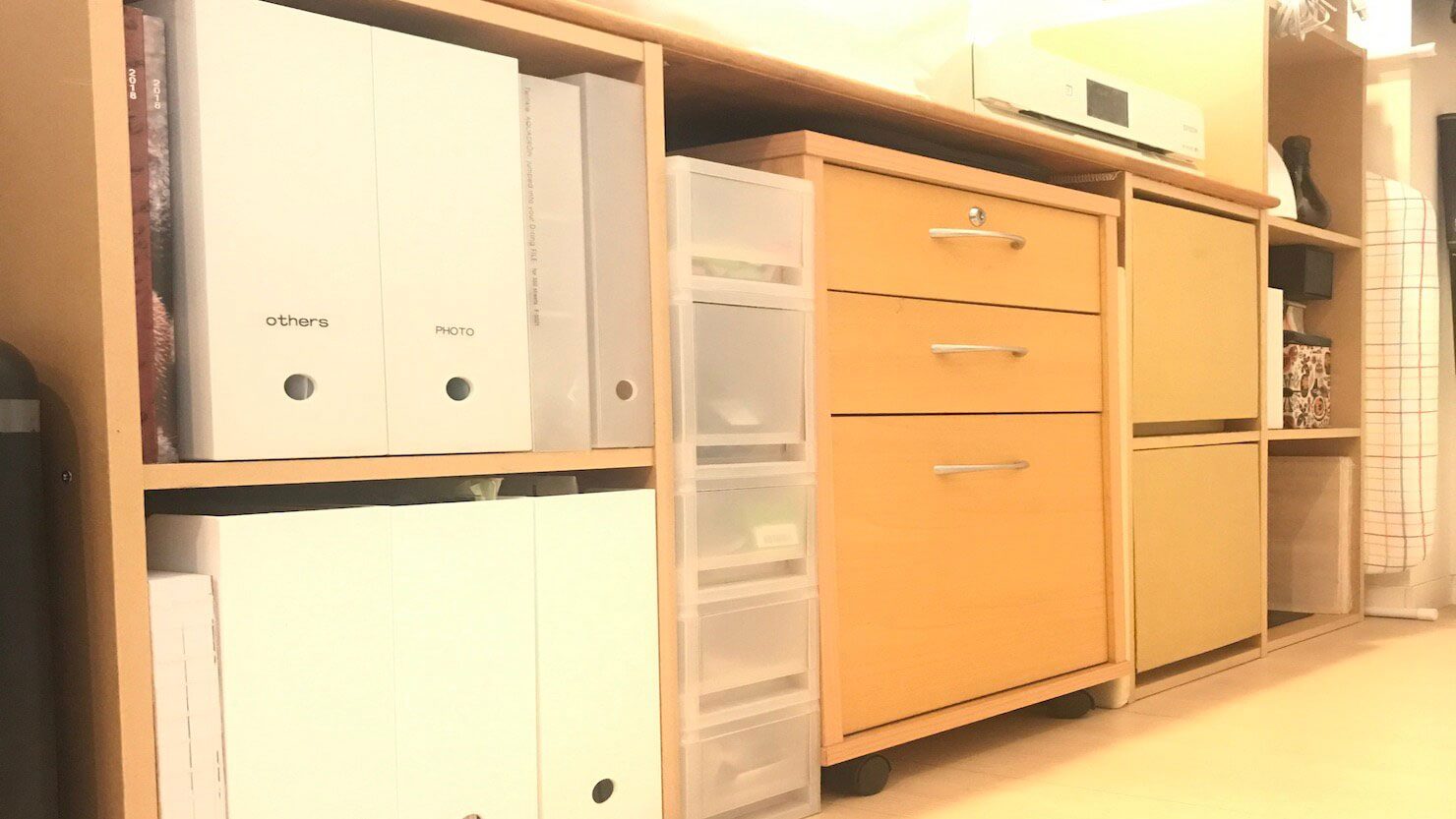 パルプボードボックスはとても丈夫で、価格も安く、色と形がそろっているので、収納としては超優秀です。