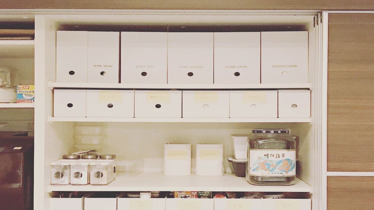 合計30個の“ポリプロピレンファイルボックス”が大集合のキッチンです。