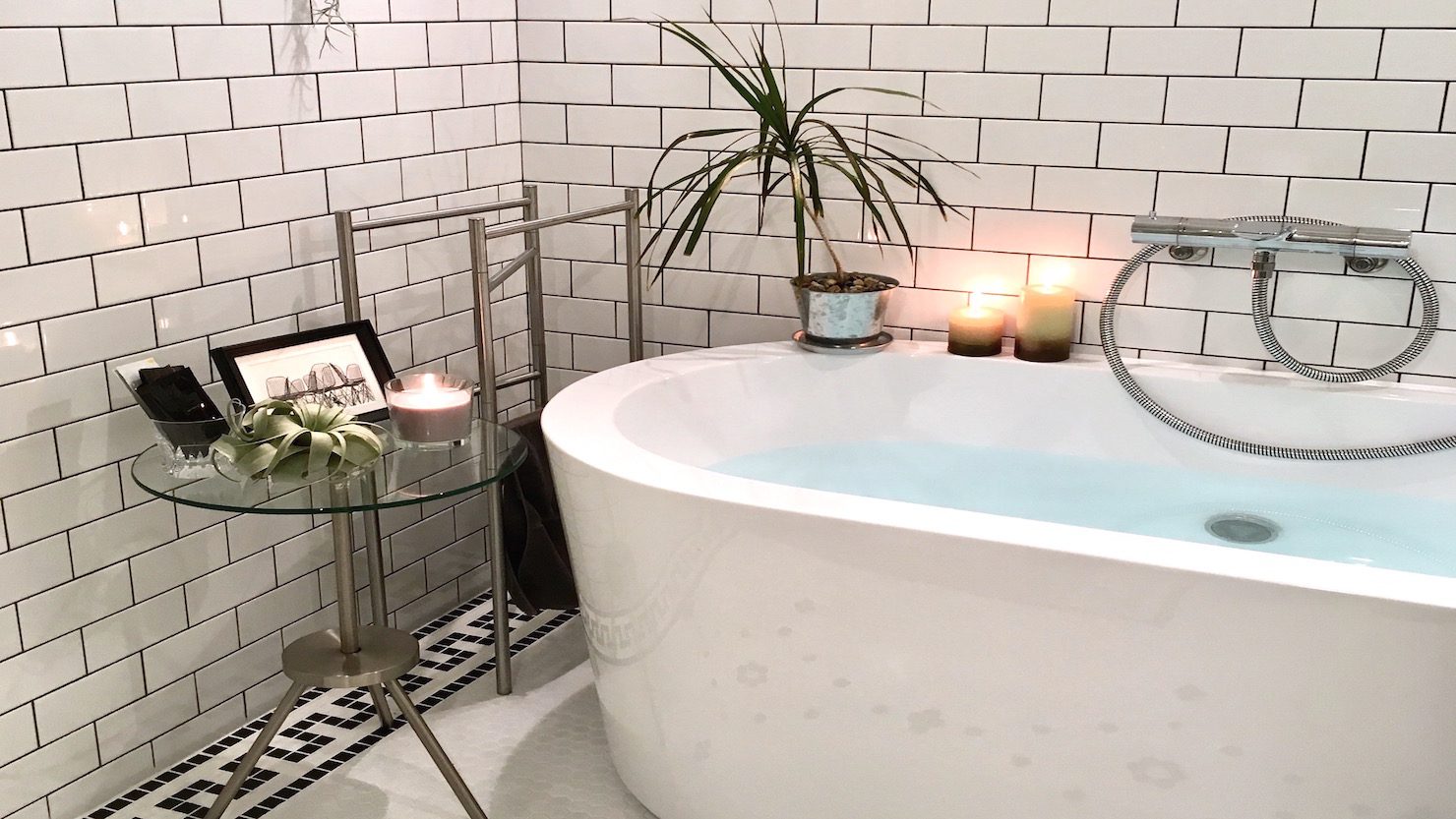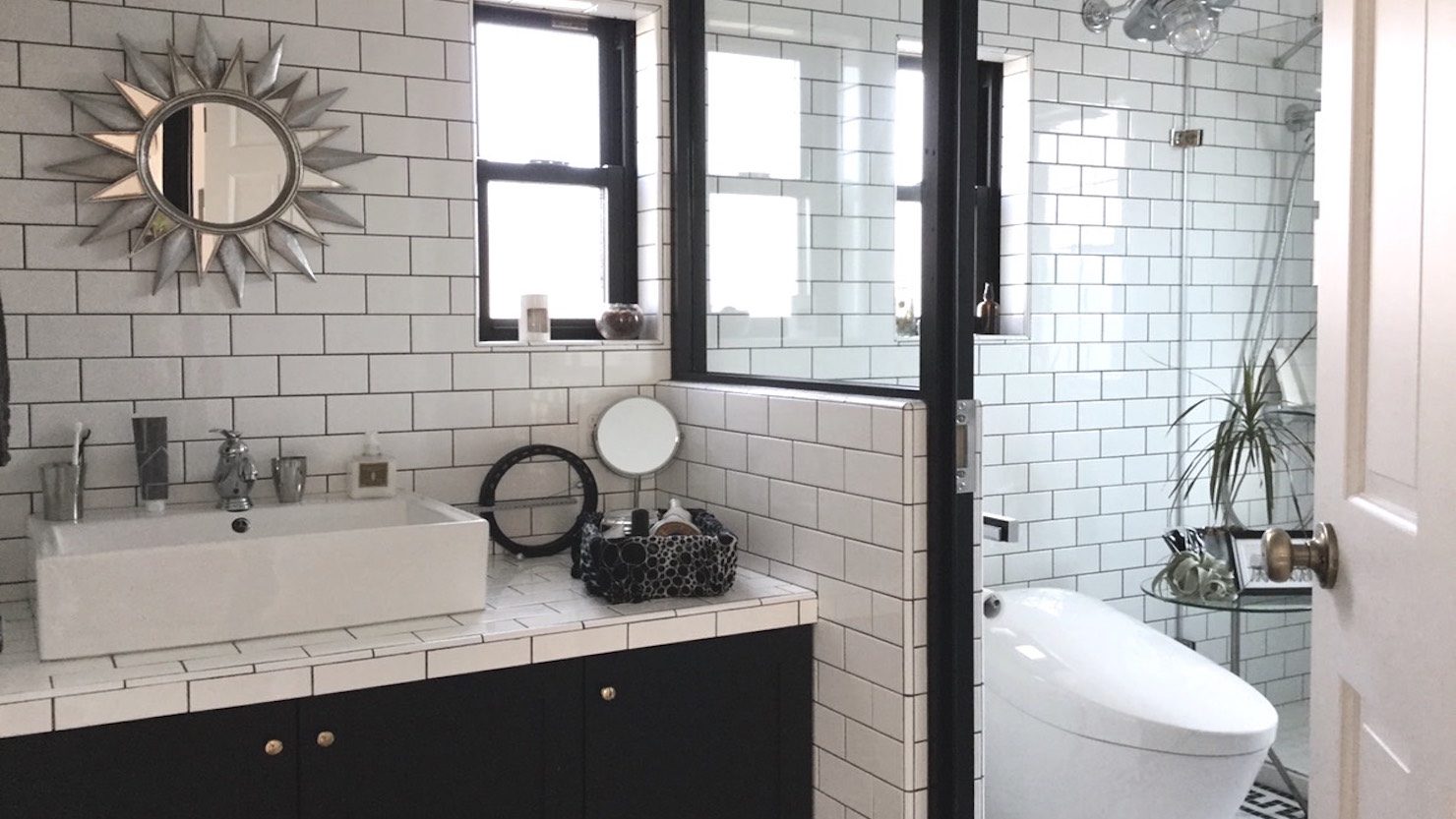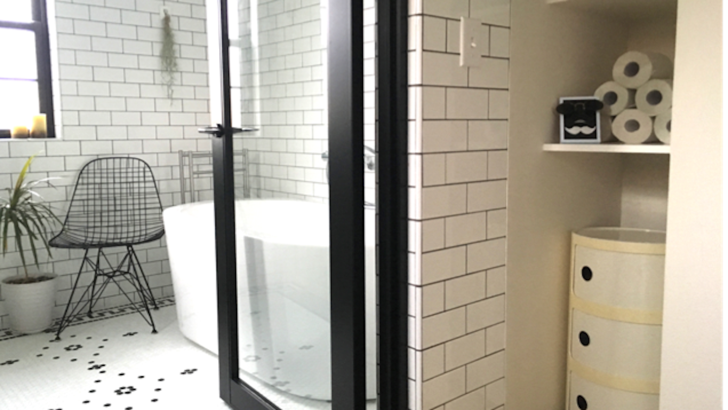 サブウェイタイルとヘキサゴンタイルが取り囲む空間に