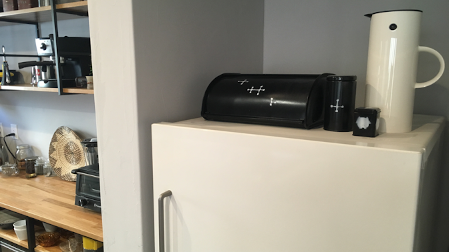 無骨でかっこいいイメージを作るため、小物はゴチャッとしても家具や建具は、無駄な装飾をそぎ落とし、レンガ、金属、ヴィンテージ家具など、素材そのものの持ち味や変化を生かせるものを使います。
