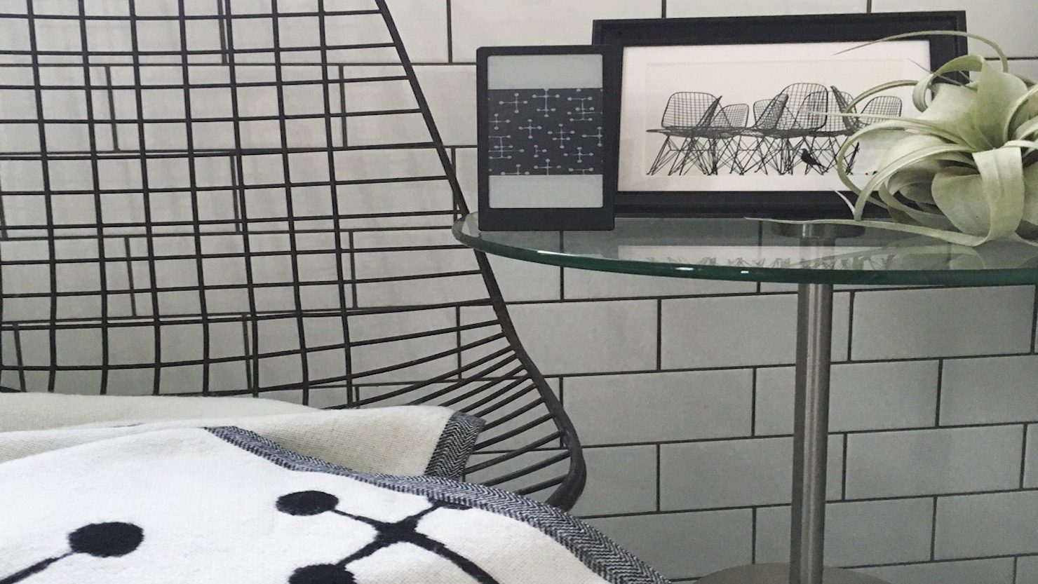 ミッドセンチュリーモダンを代表するヴィンテージのイームズチェアを合わせています。