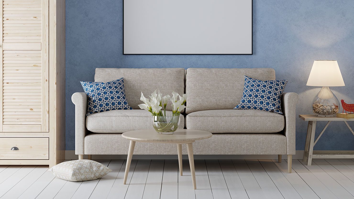 まず壁をおしゃれにするためには、1面だけを色や柄のついた壁紙に張り替えるアクセントクロスをおすすめします。ベージュやブルーなど落ち着いた色を選べば、家族全員がリラックスして過ごせる空間を演出できます。