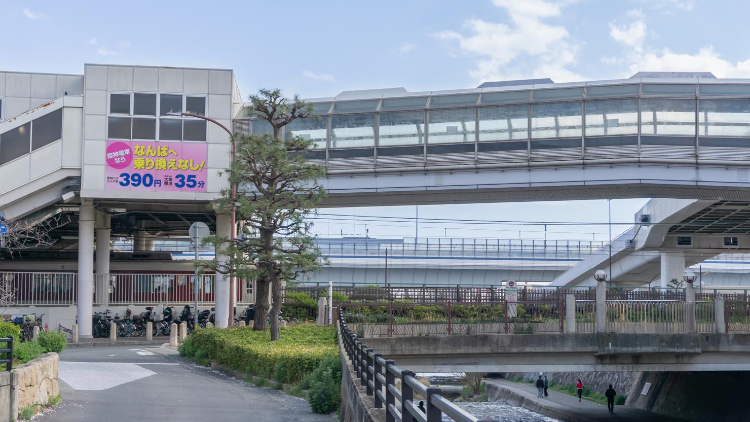 阪神本線の魚崎駅と六甲ライナーの魚崎駅は連絡通路でつながっているため、雨が降っている場合も濡れずに移動することが可能です。連絡通路からは二級河川の住吉川が一望できるのですが、私はこの景色に癒されることが気に入っているポイントでもあります。