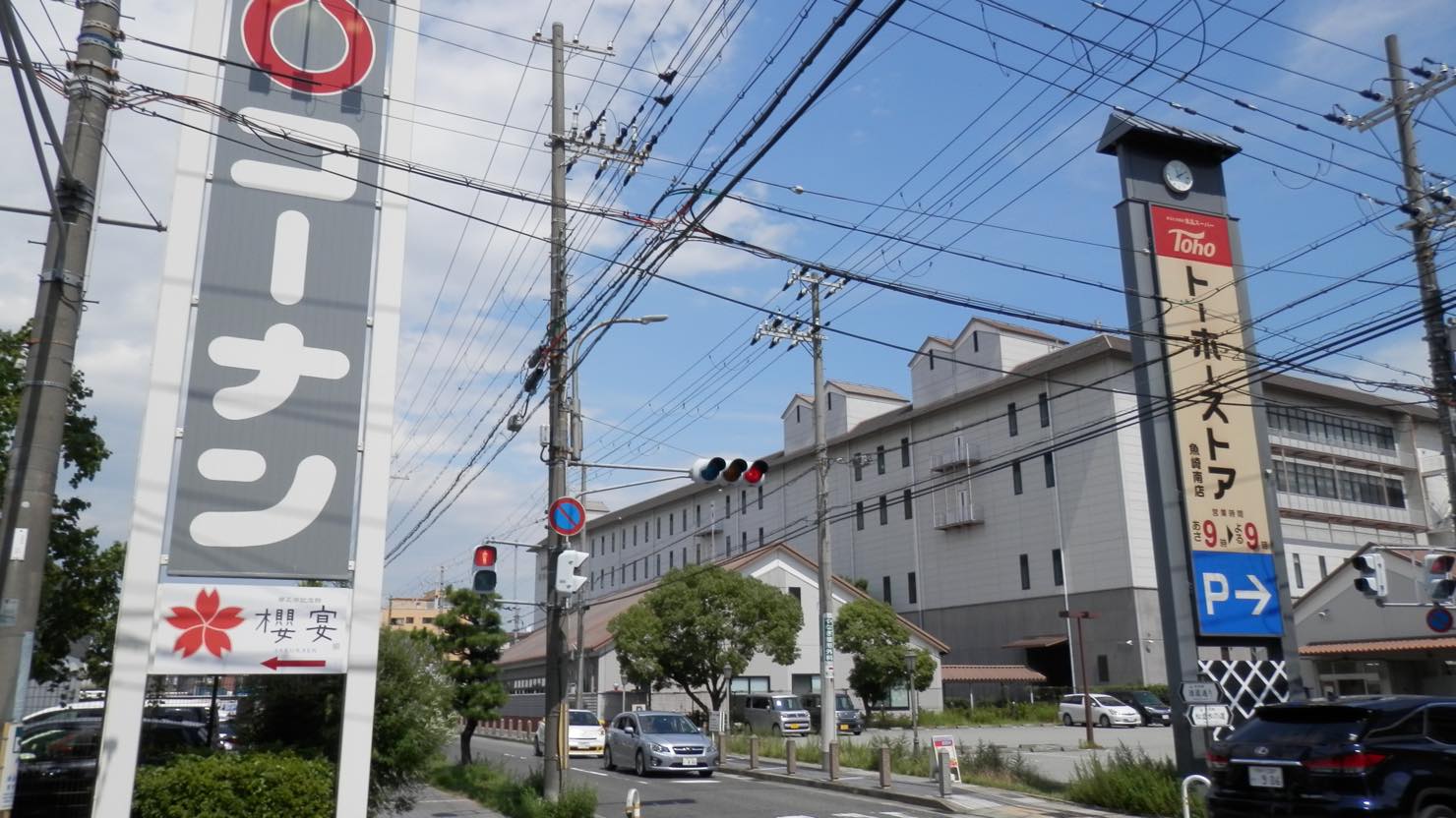 魚崎駅の南西には大型ホームセンターコーナン魚崎店とトーホーストア魚崎南店も。この大型店2点は道路を挟んで南北に向かい合っています。電化製品や家具、ペット用品をホームセンターコーナンで、食材やお惣菜をトーホーストアで同時にまとめ買いができるという便利さに感激です。
