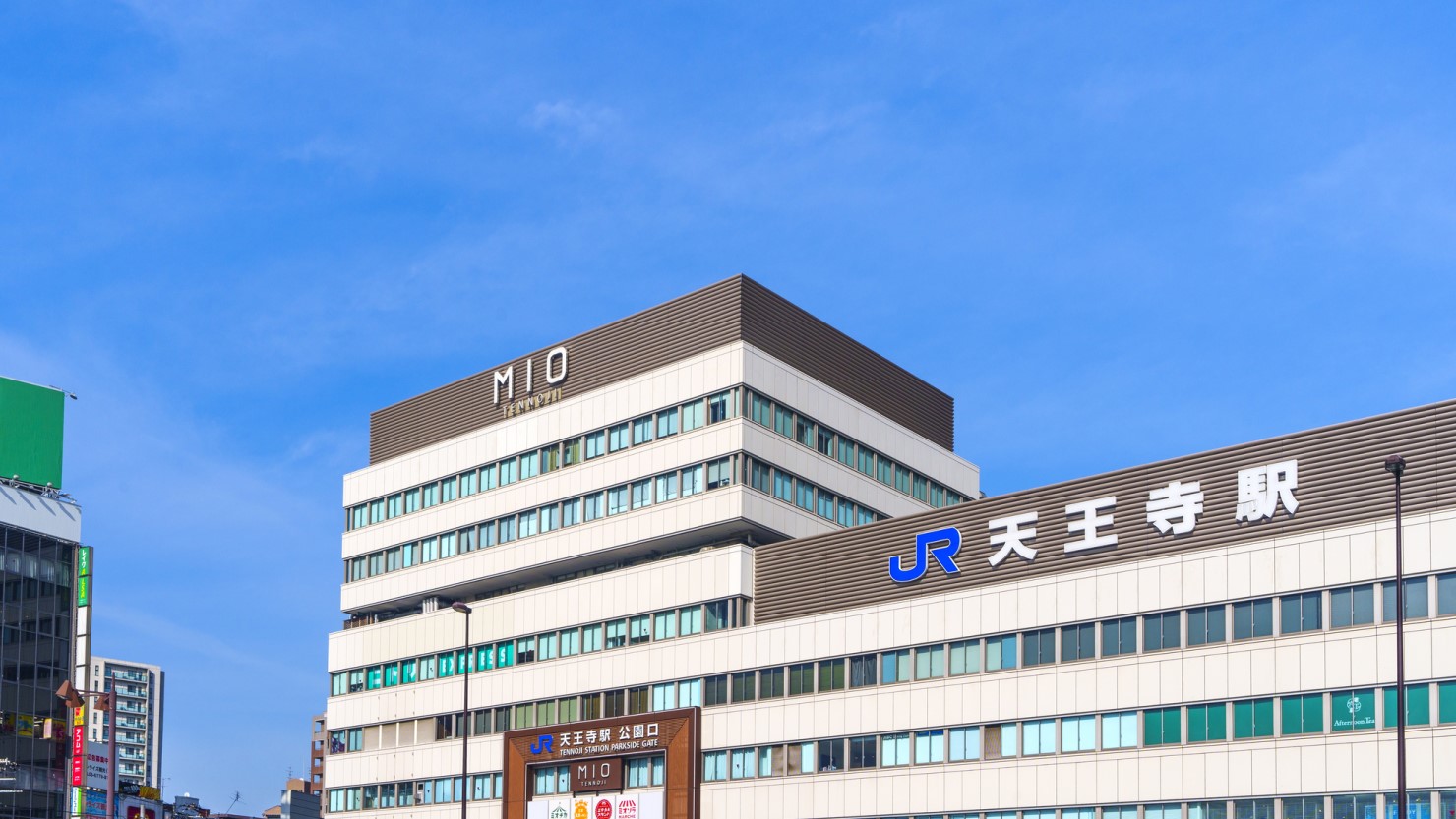 駅のすぐ北西側には天王寺公園が広がり、真っすぐ北側には駅名の由来にもなった四天王寺があります。また、駅周辺こそショッピング施設や飲食店が密集している印象ですが、駅の東側や南側には住宅街が広がります。