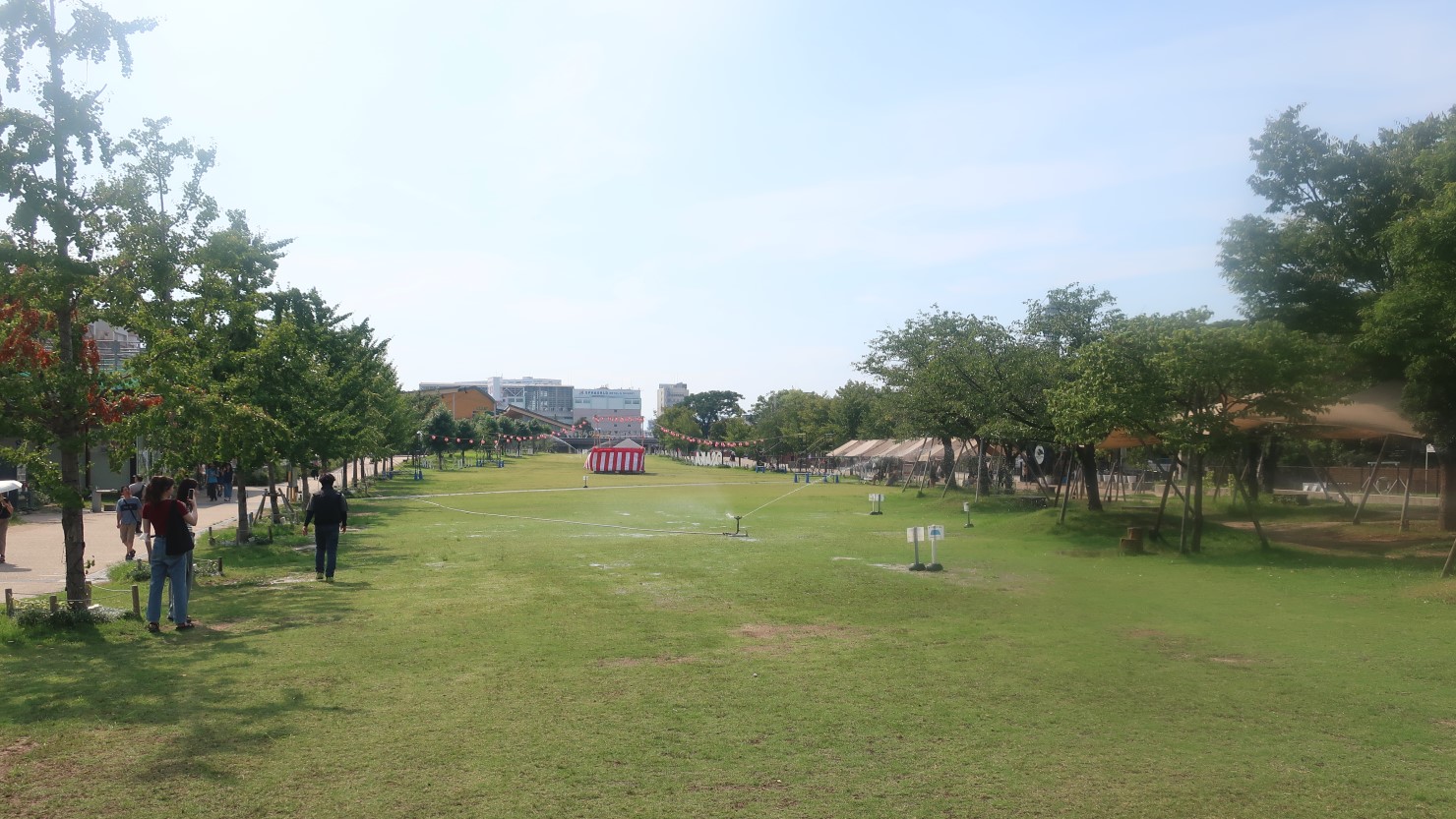 公園の南側は2015年に大規模な開発が行われ、「てんしば」と呼ばれる芝生スペースになりました。広場の周囲にはカフェ・レストランやコンビニなども並び、頻繁にイベントも開催されているので休日などは多くの人でにぎわっています。