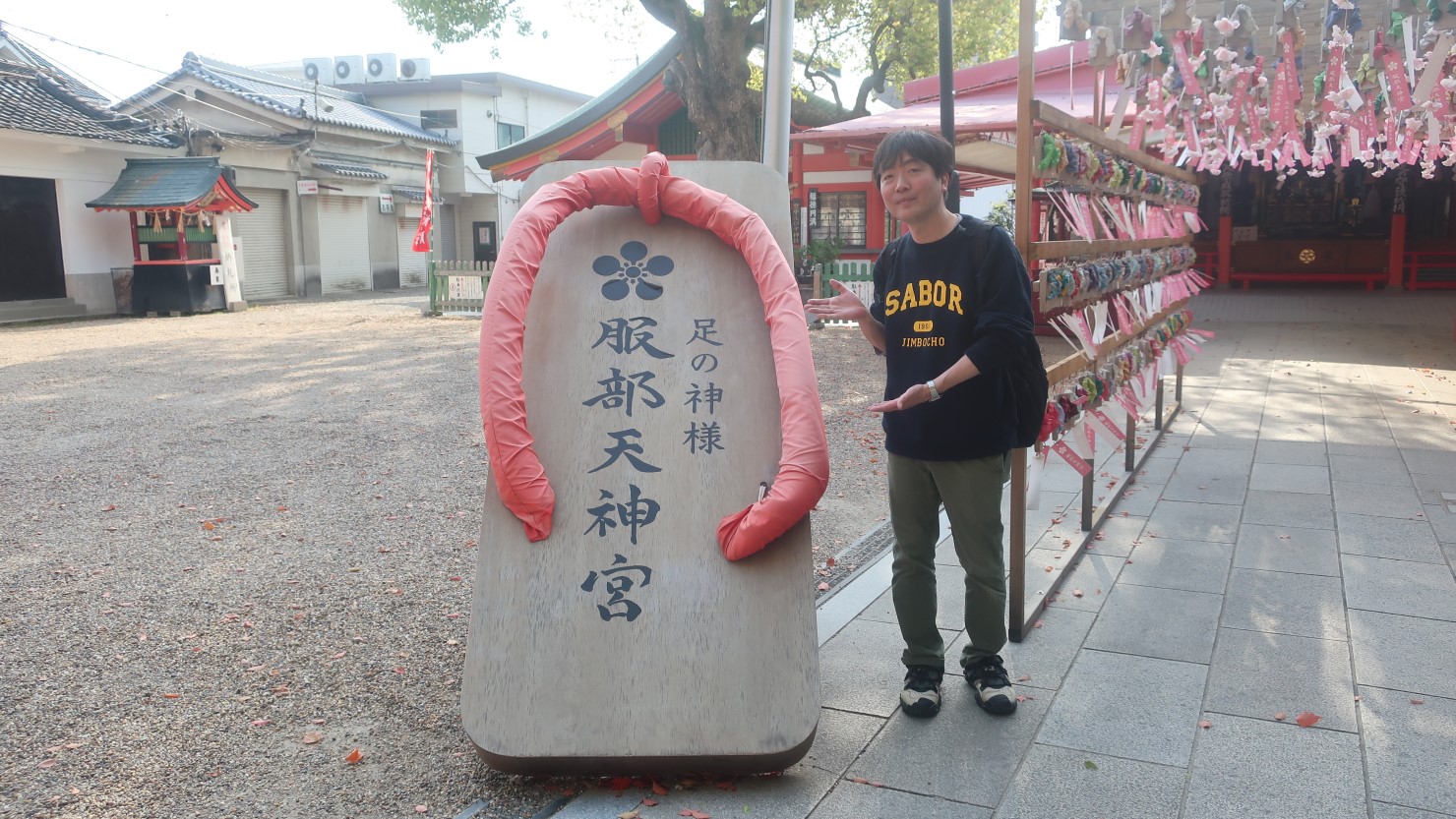 天竺川近くにある神社・住吉稲荷大明神にお詣りし、その参道を歩いて駅前まで戻って、今度は服部天神宮へ、と、神社めぐりかのような行程になりました。服部天神宮は菅原道真を祀っていますが、かつて、この神社で菅原道真が足の病を治して福岡の大宰府までの旅を無事終えることができたという言い伝えがあり、昔から「足の神様」として信仰を集めています。気ままに散歩している時間が何より大事なこの連載なので、「いつまでも元気に歩けますように」と手を合わせました。