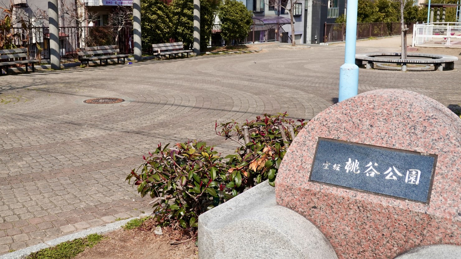 桃谷駅から徒歩4分のところに「桃谷公園」があります。