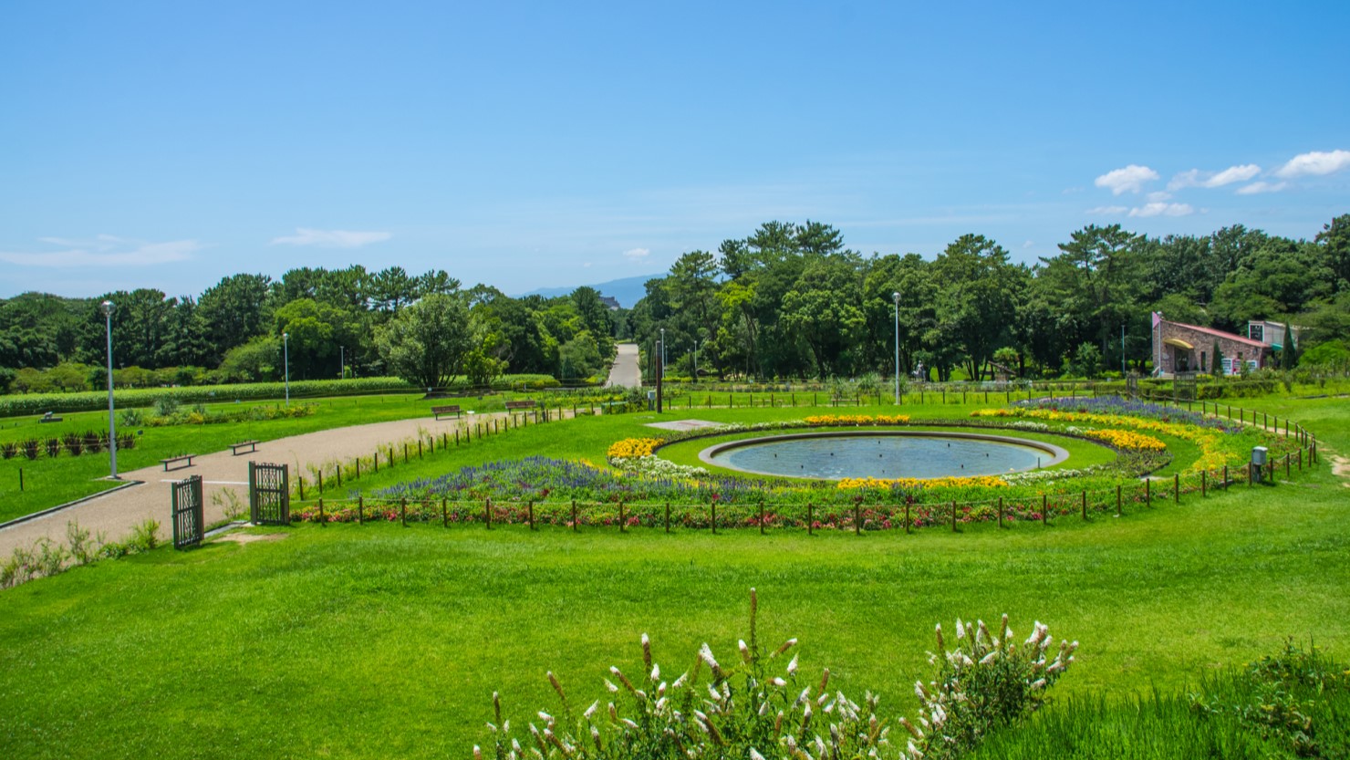 「豊島公園」の園内には、多目的広場やバラ園、豊中ローズ球場、テニスコートなどがあるほか、児童遊具コーナーもあり、幼児ゾーン・児童ゾーンなど4つのゾーンでどの年代の子どもたちも安心して遊ぶことができます。