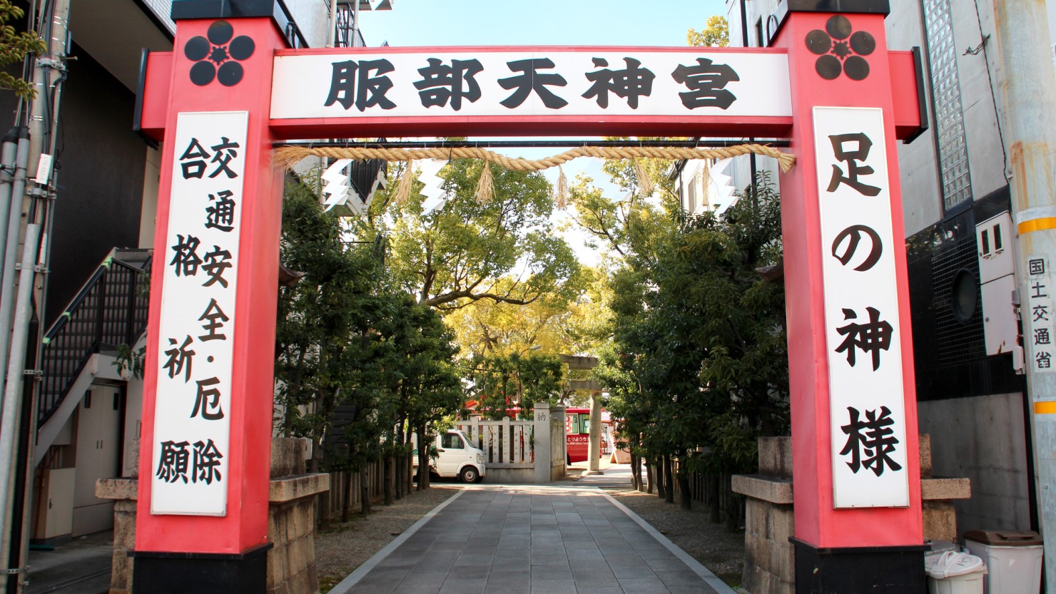 服部天神駅の周辺は、北摂地域のなかでも静かな住宅街が広がり、大阪市に近いためベッドタウンとしても人気です。毎年1月9〜11日には商売繁盛を願い、新しい年の福をいただくお祭り「豊中えびす祭り」が「服部天神宮」で開催されます。35万人の参拝者で大変なにぎわいを見せ、福をお授けする福娘が発祥と言われる伝統的なお祭りです。