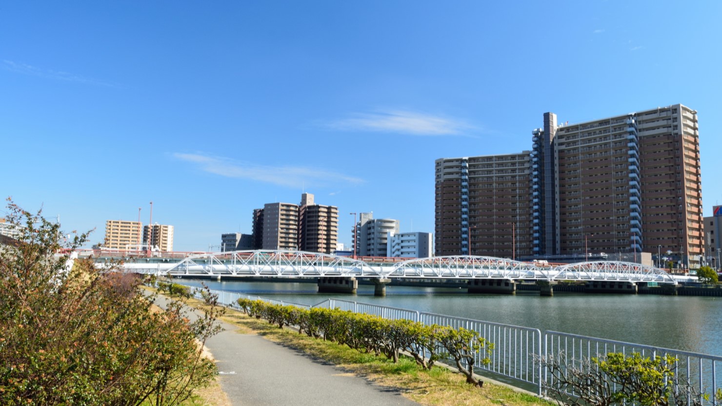 三国駅周辺は自然が少ないイメージがあるかもしれませんが、すぐ近くには神崎川が流れています。川沿いはサイクリングロード「なにわ自転車道」が整備されており、ロードバイクやクロスバイクでゆったりとサイクリングするにはもってこいの道です。自転車だけでなく、歩行者も散歩ができるのでリフレッシュしたいときにおすすめです。