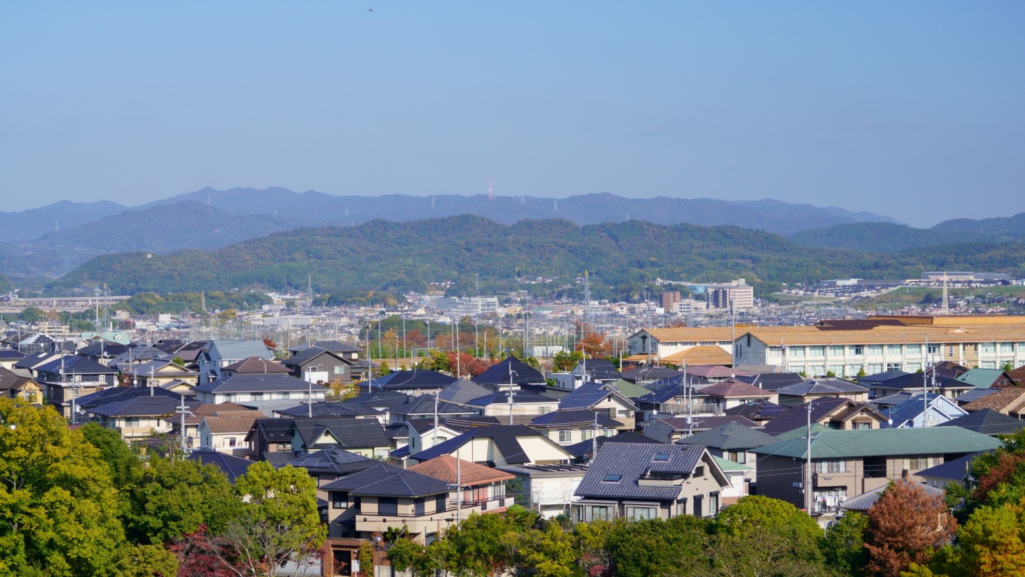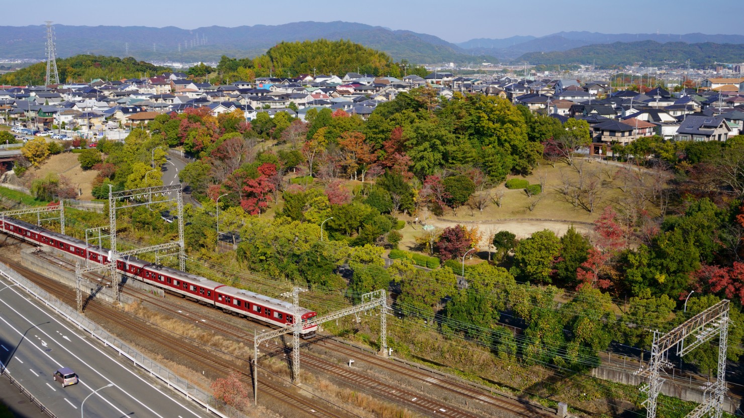 高の原駅は、奈良県奈良市と京都府木津川市の県境付近に位置する近鉄京都線の駅です。同じ沿線には複数路線が乗り入れる大和西大寺駅や近鉄丹波橋駅、京都駅があり、他府県方面への乗り換えにも便利です。また駅周辺には、UR都市機構(旧 日本住宅公団)が主体となって開発し、1972年に入居が始まった大規模ニュータウン「平城・相楽ニュータウン」(2022年に街の愛称を「高の原」としています)があり、奈良県奈良市、京都府木津川市、京都府相楽郡精華町にまたがって団地や一戸建てが集まるエリアが広がっています。ニュータウンでは奈良市街からの眺望にも配慮されており、主要な尾根部の緑地は大切に保全されています。