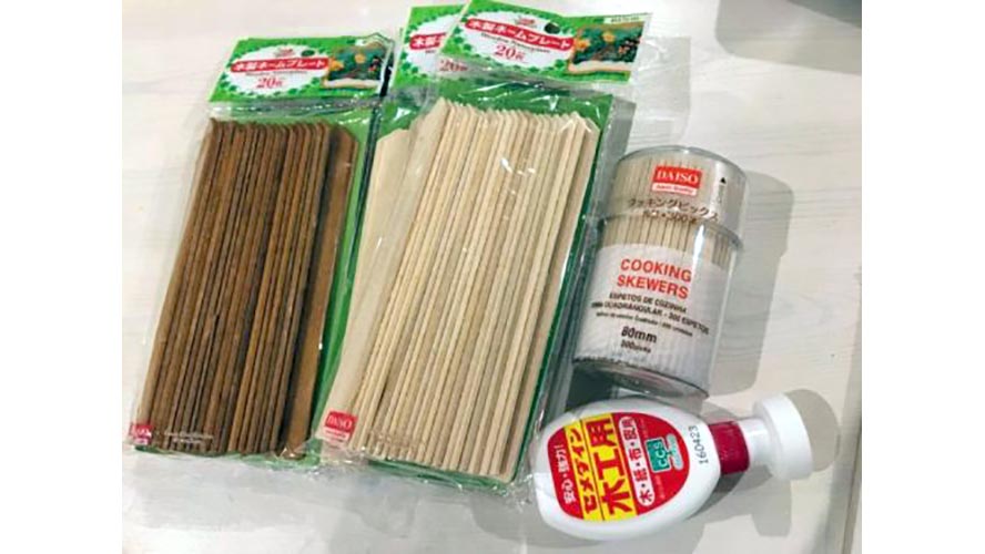 アイスの棒は食べたあとのものをきれいに洗ってよく乾かして使用します。棒をたくさん集めるのが難しければ、100円ショップで購入することもできます。「木製スティック」といった名称で売られているので、探してみてくださいね。