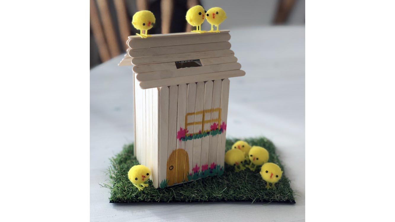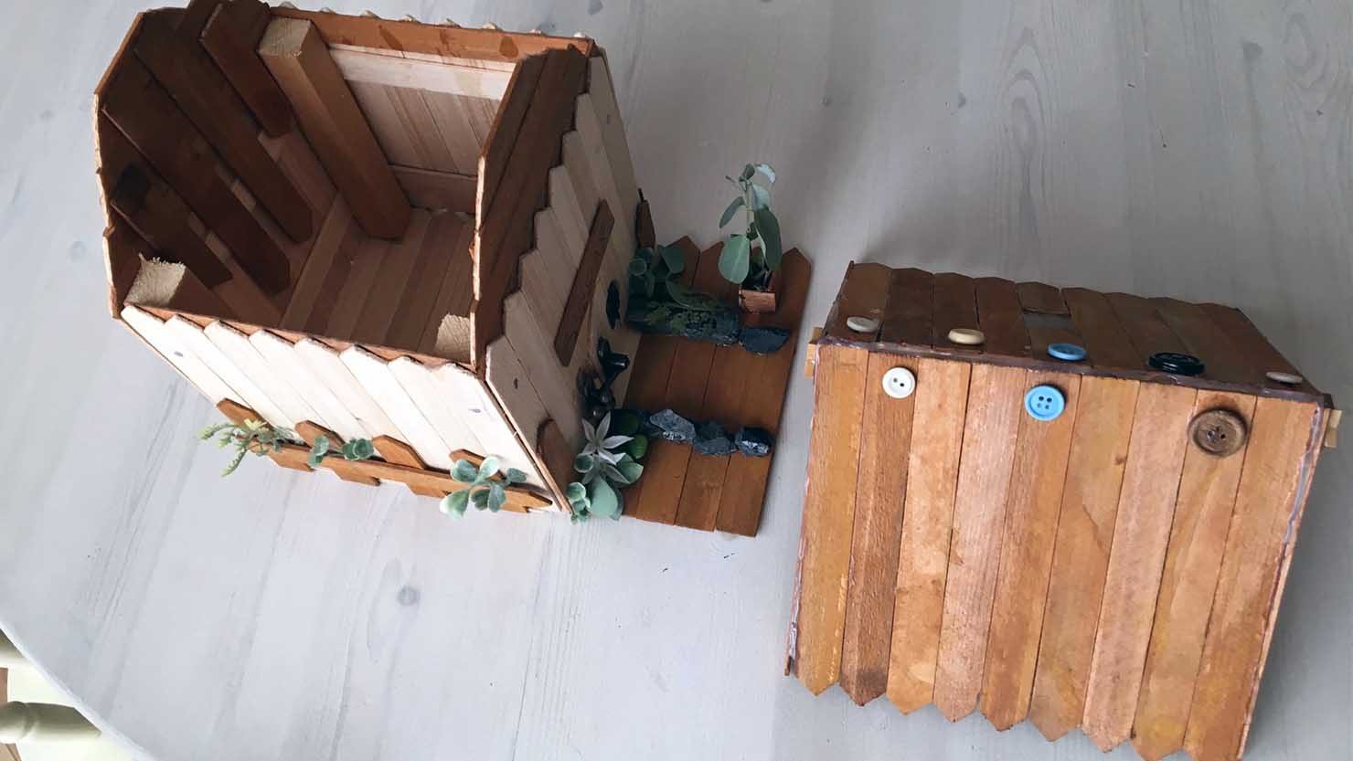低学年向け自由研究2.木のおうちの貯金箱