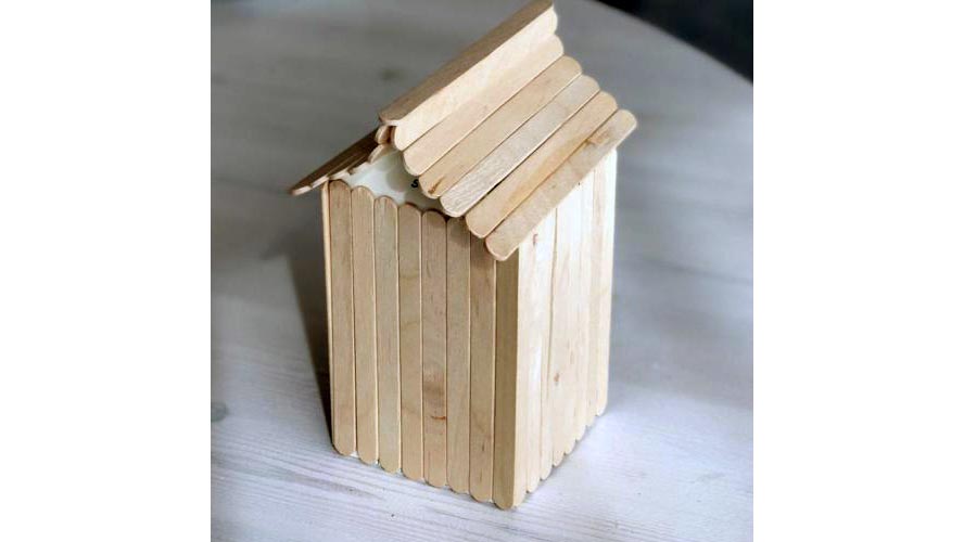 これからご紹介するのは、木材を使った貯金箱作りです。アイスの棒や園芸用木製スティックを使って、子どもたちに人気の、木のおうちの貯金箱を手作りしてみてはいかがでしょうか。