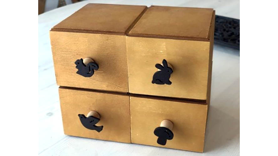 100円ショップの木製木箱やミニ引出しを組み合わせて、消しゴムやキーホルダーなどの整理にぴったりな、オリジナルのミニ引出しを作ってみてはいかがでしょうか。