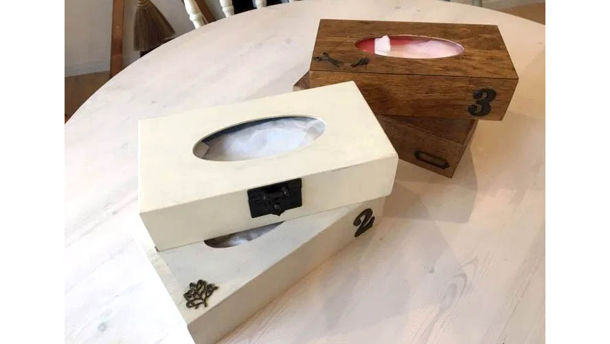 100円ショップに売っている木製ティッシュケースを使って、オリジナルのティッシュケースを作るのもおすすめ。デコレーションしたり、ペイントしたりかわいいオリジナルティッシュケースを簡単に作ることができます。