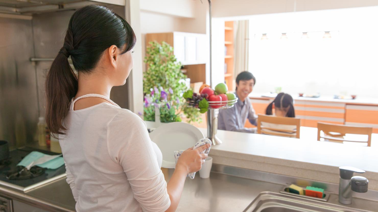 オープンキッチンなら料理をしながら子どもが遊ぶ様子を確認できるので安心ですし、大きくなってからはキッチンから子どもの宿題を見守ることが可能です。子どもからも料理をしている姿がすぐ目に入るので、自然とお手伝いをしやすいという利点もあります。