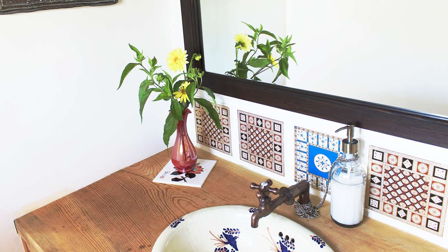 洗面台は、どの家も同じ印象になりがちです。でも、賃貸に多い、ユニットタイプのシンプルな洗面台こそ、簡単にイメージチェンジができます。