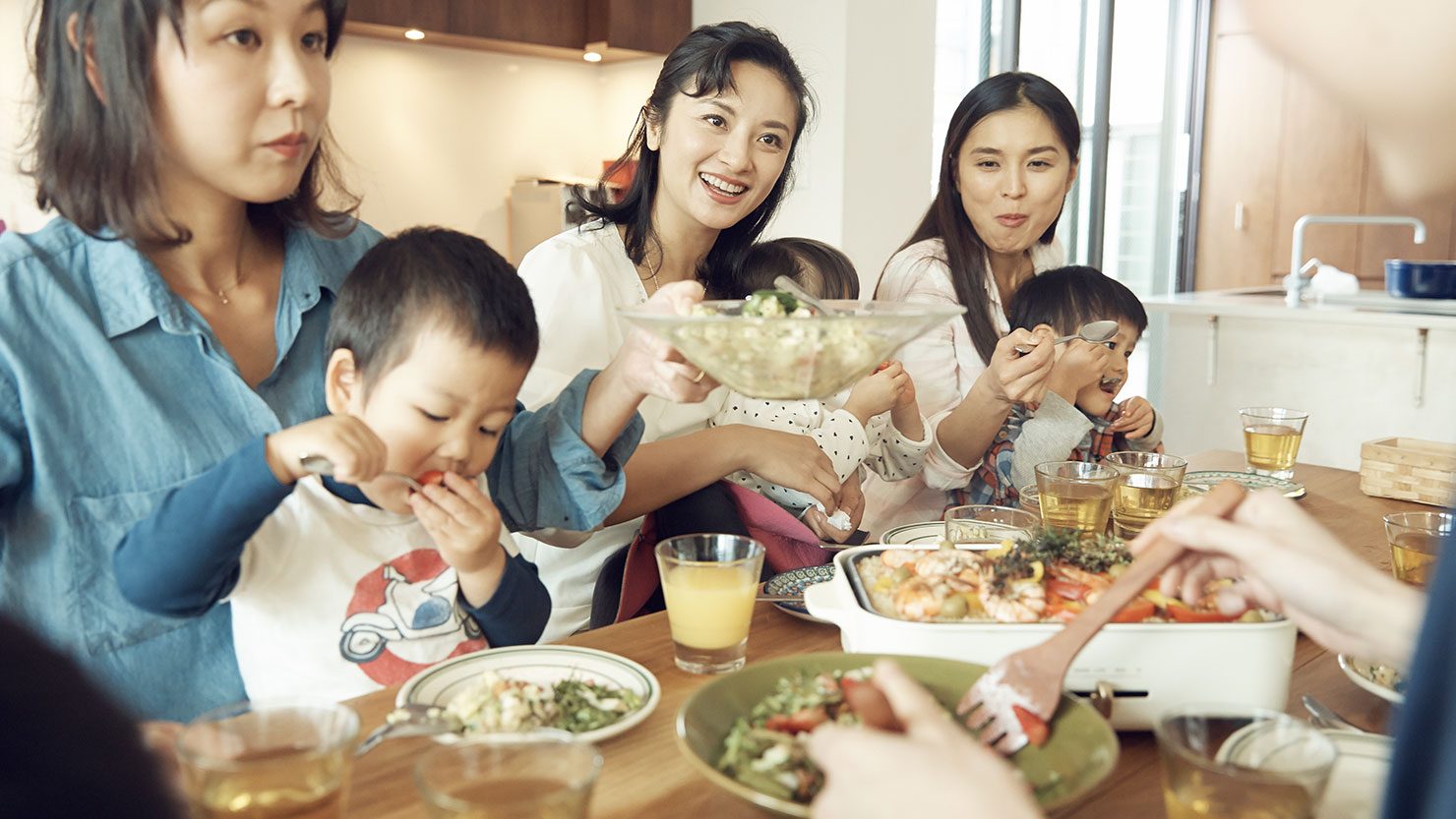 今では月に1回、金曜日の夕方にママ友や保育園のお友達を自宅に招待して、子ども同士を遊ばせながら、大人はゆっくりとディナーを楽しんでいます。