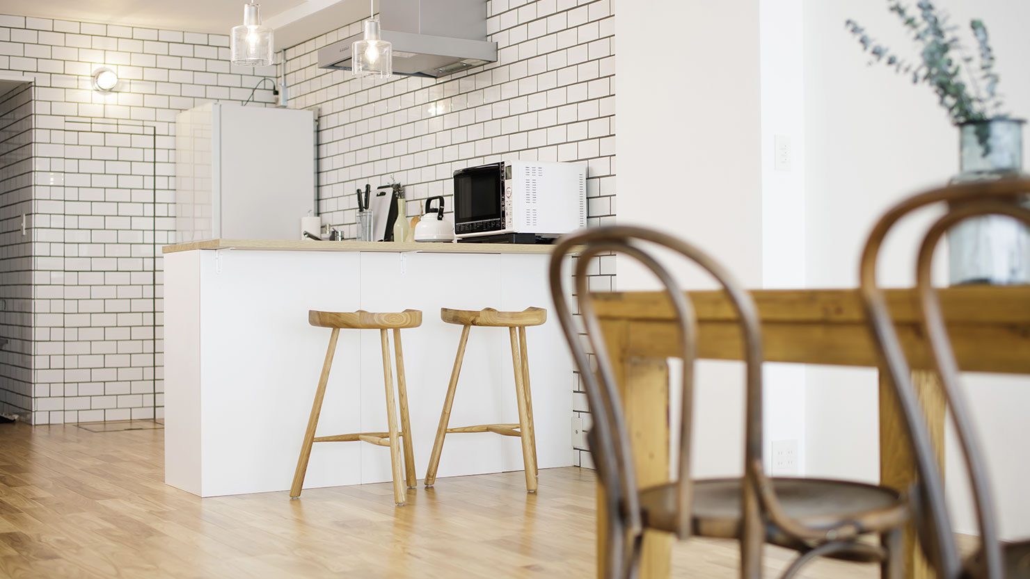 壁付けキッチンなら、振り向いたらダイニングテーブルがある、振り向いたらカウンターがある、といった配置も可能なので、動線を短縮しやすいです。