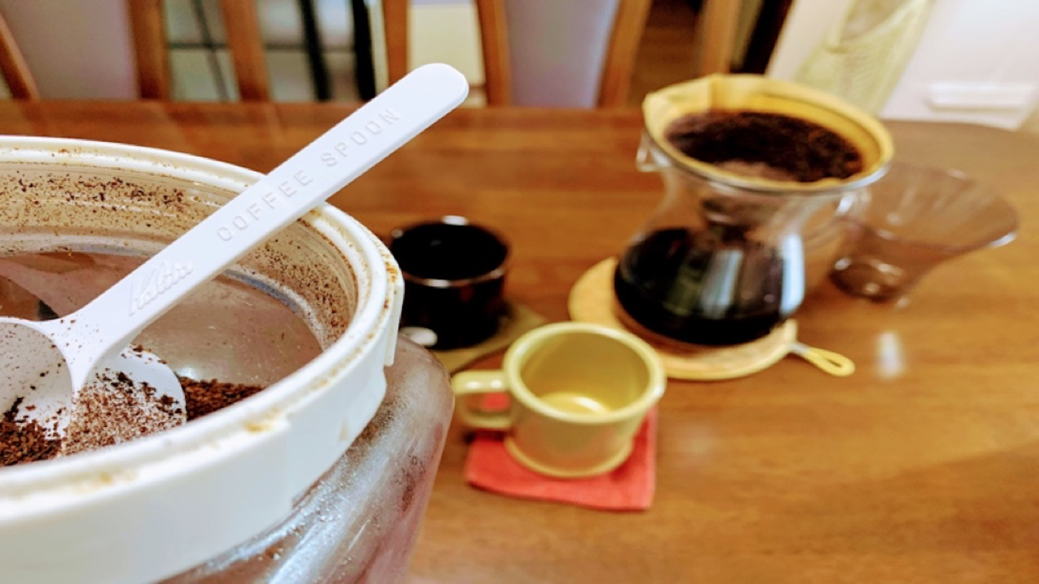 妻が起きる頃にコーヒーをドリップして待つ。